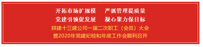 大會號召,公司全體職工要緊密團結在以習近平同志為核心的黨中央周圍,深入貫徹公司一屆二次職工(會員)大會暨2020年黨建紀檢和年度工作會議精神,凝心聚力,務實擔當,不負韶華,篤定前行,為實現陜建十三建公司高質量發(fā)展和“百億”十三建目標不斷奮進,為陜建集團實現整體上市和跨入世界500強再立新功。