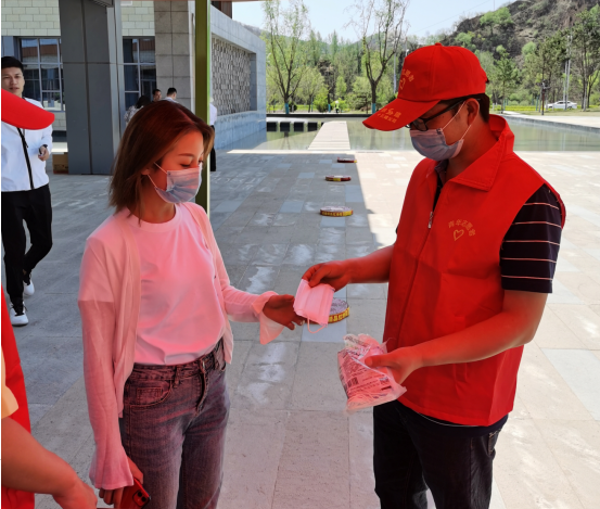 協(xié)助景區(qū)衛(wèi)生部門對游客進(jìn)行測溫、消毒,提供口罩。