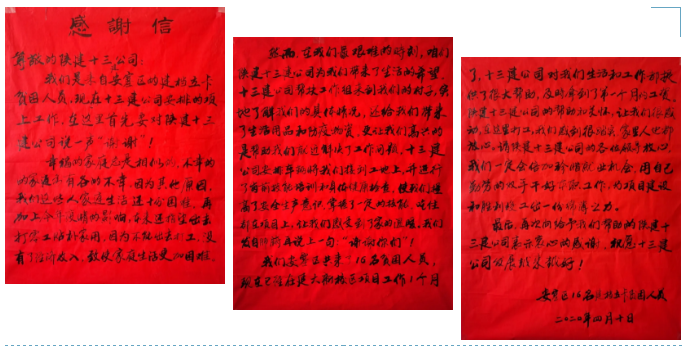 十三建公司結(jié)合每一名貧困戶的實(shí)際情況,按照就近安排的原則,把他們都安排在離家比較近的項(xiàng)目,既方便上班,又能照顧家里。為了讓貧困人員更好地適應(yīng)崗位需求,項(xiàng)目部對他們進(jìn)行了崗前培訓(xùn)和安全教育,普及文明施工知識,開展相關(guān)技能培訓(xùn)。如今過去一個(gè)月了,所有貧困就業(yè)人員都及時(shí)拿到了第一個(gè)月工資,為了表達(dá)他們的心意,聯(lián)名給十三建公司寫了一封“感謝信”。