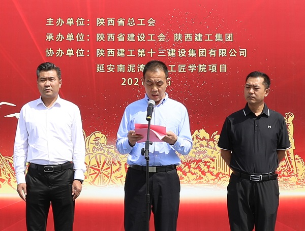 陜西建工集團(tuán)黨委常委、副總經(jīng)理劉小強(qiáng)在致辭中表示陜建作為我省最大的國(guó)企建筑鐵軍,在省委、省政府的領(lǐng)導(dǎo)下,在70余年的發(fā)展長(zhǎng)河中,建設(shè)了一大批國(guó)防、科教、文衛(wèi)、公共服務(wù)等重點(diǎn)項(xiàng)目,積極服務(wù)于陜西發(fā)展和國(guó)家建設(shè),既有深厚的文化積淀,又有雄厚的綜合實(shí)力。有幸承建延安南泥灣勞模工匠學(xué)院這個(gè)重點(diǎn)項(xiàng)目,我們倍感榮幸,倍加珍惜。我們已將該項(xiàng)目列為十三建集團(tuán)的“一號(hào)工程”,調(diào)集精兵強(qiáng)將,以“出手必須出彩,完成必須完美”的作風(fēng)、“開(kāi)局就是決戰(zhàn),起步就是沖刺”的魄力,“努力到無(wú)能為力,拼搏到感動(dòng)自己”韌勁,科學(xué)合理、協(xié)調(diào)高效的管理模式,將項(xiàng)目建設(shè)成為優(yōu)質(zhì)結(jié)構(gòu)工程、綠色施工示范工程,爭(zhēng)創(chuàng)魯班獎(jiǎng),為省總工會(huì)交上一份滿(mǎn)意的“答卷”。