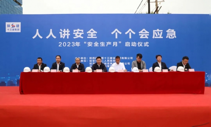 6月2日,陜建十三建集團在第二人民醫(yī)院改擴建項目項目部舉行2023年“生產(chǎn)安全月”啟動儀式。延安市第二人民醫(yī)院院長武劍峰、延安城投基礎設施建設有限公司副總經(jīng)理習智、集團總工程師王弘起、副總經(jīng)理楊永宏等出席啟動儀式。