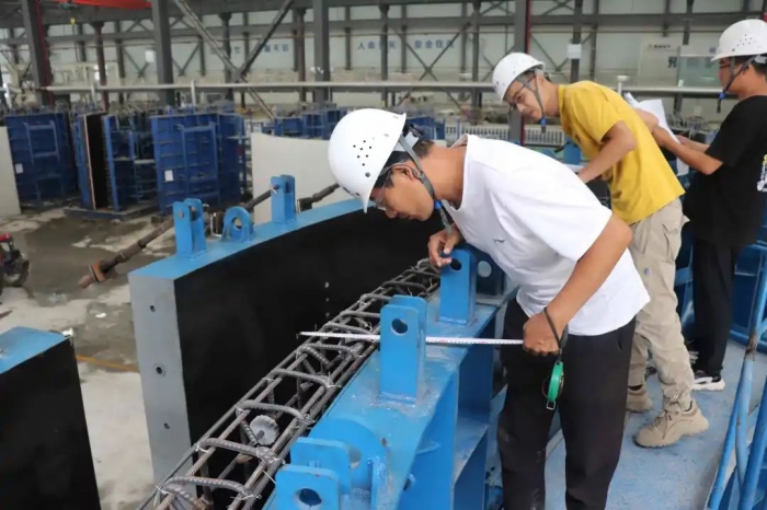 承接任務后,為確保管片順利澆筑,集團新型建材公司統(tǒng)籌部署,科學組織,嚴格按照設計圖紙、技術生產(chǎn)規(guī)范要求,對現(xiàn)場管理人員、勞務隊伍進行了詳細的技術交底,明確了操作規(guī)程;嚴格把控原材進場關,優(yōu)化混凝土配合比,保證管片成品質量符合設計要求;加強協(xié)調(diào)管控,嚴格按照施工操作要求完成了模具安裝、鋼筋綁扎、塌落度檢測、混凝土振搗等工作。