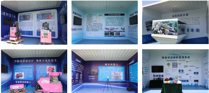 該項(xiàng)目緊扣智能化、數(shù)字化主題,以“設(shè)計(jì)數(shù)字化、施工智能化、管理信息化”為主線,分為“數(shù)字平臺(tái)區(qū)、智能機(jī)器人區(qū)、智能設(shè)備區(qū)、四新技術(shù)應(yīng)用區(qū)、展板區(qū)”五大展區(qū),分別呈現(xiàn)了質(zhì)量巡檢系統(tǒng)、BIM技術(shù)過程管理、基坑監(jiān)測系統(tǒng)、地面整平機(jī)器人、地庫抹光機(jī)器人、螺桿洞封堵機(jī)器人、混凝土內(nèi)墻面打磨機(jī)器人、建筑清掃機(jī)器人、地坪研磨機(jī)器人、ALC墻板安裝機(jī)器人等,展示了一系列施工相關(guān)的智能建造技術(shù)和智能設(shè)備,讓觀摩人員贊嘆不已、紛紛點(diǎn)贊。